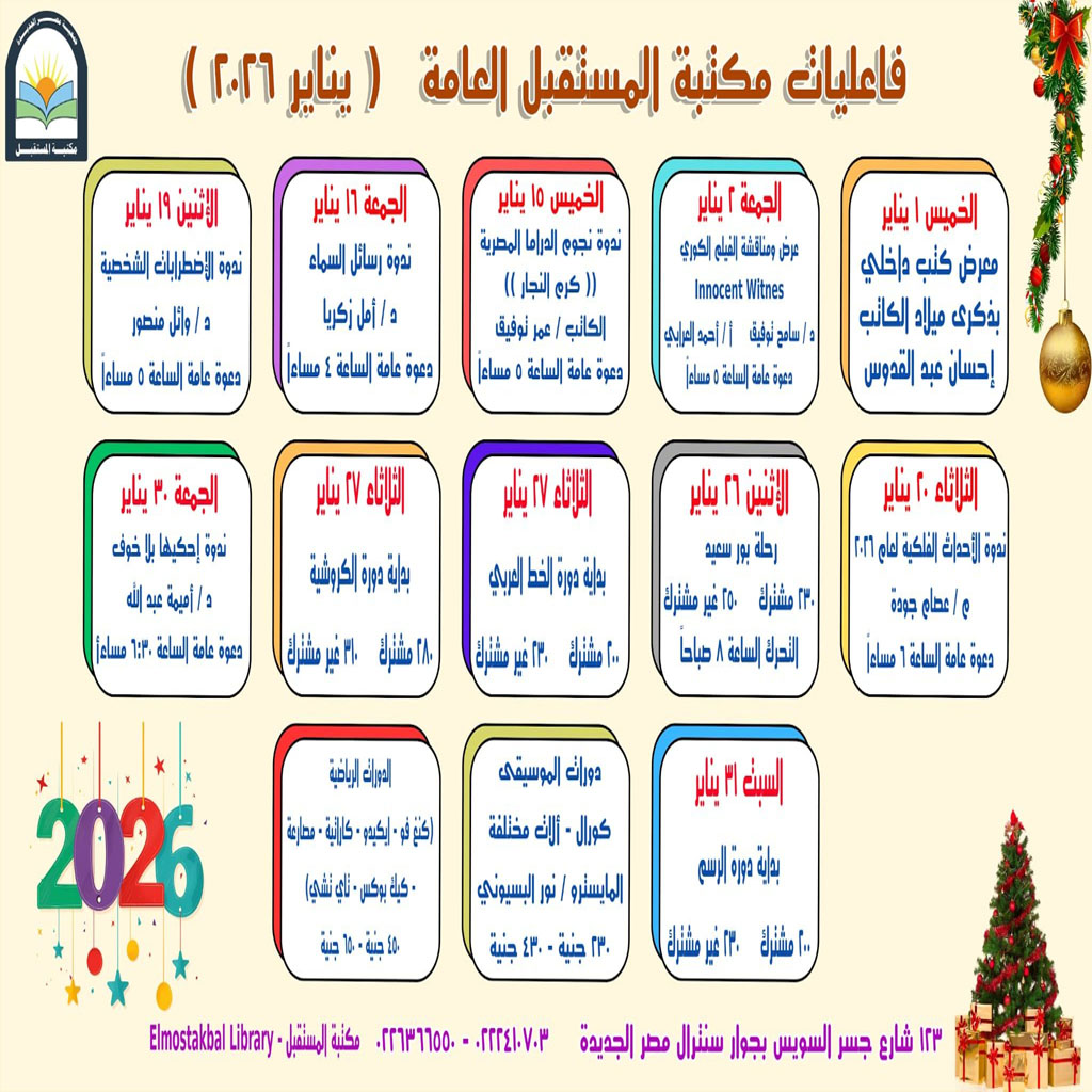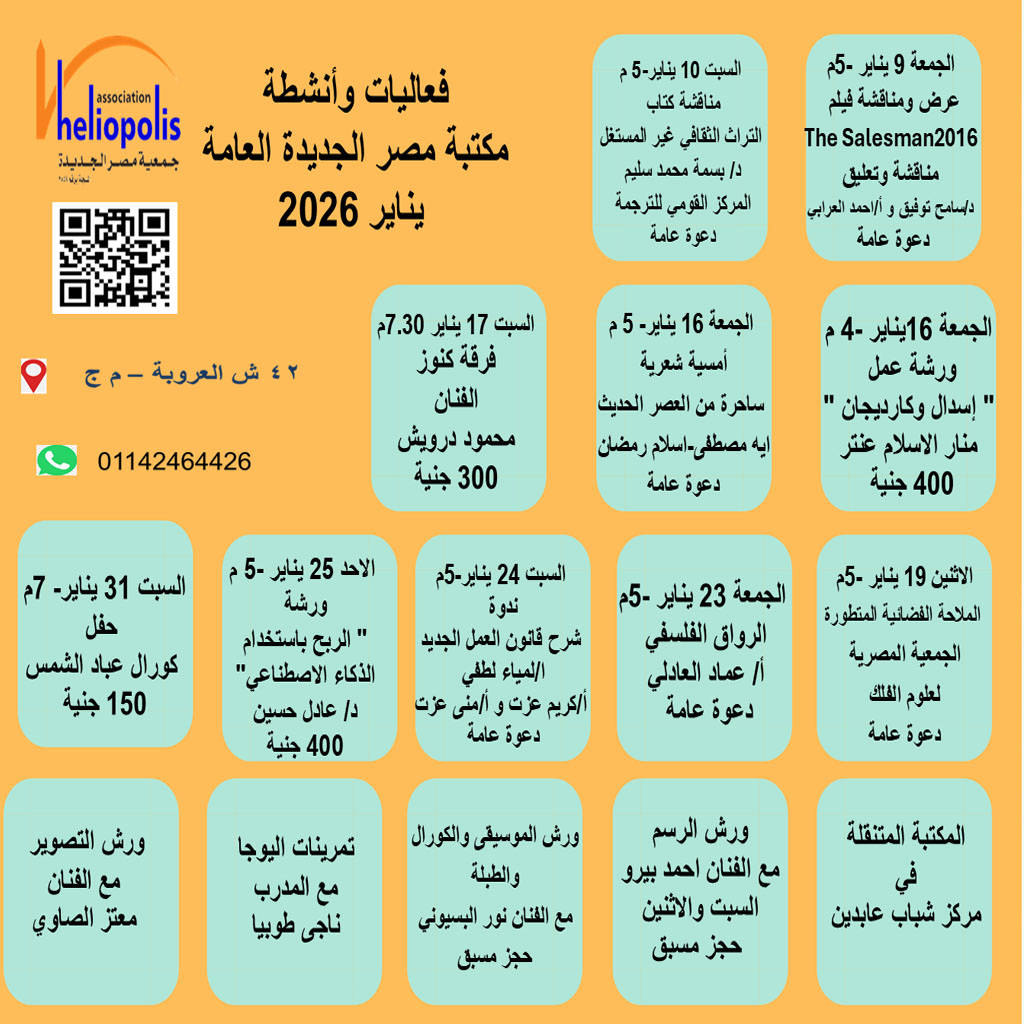 تتضمن “مكتبة للكبار” و ” مكتبة الأطفال” وقاعة مسرح تسع لعدد (270) فرد