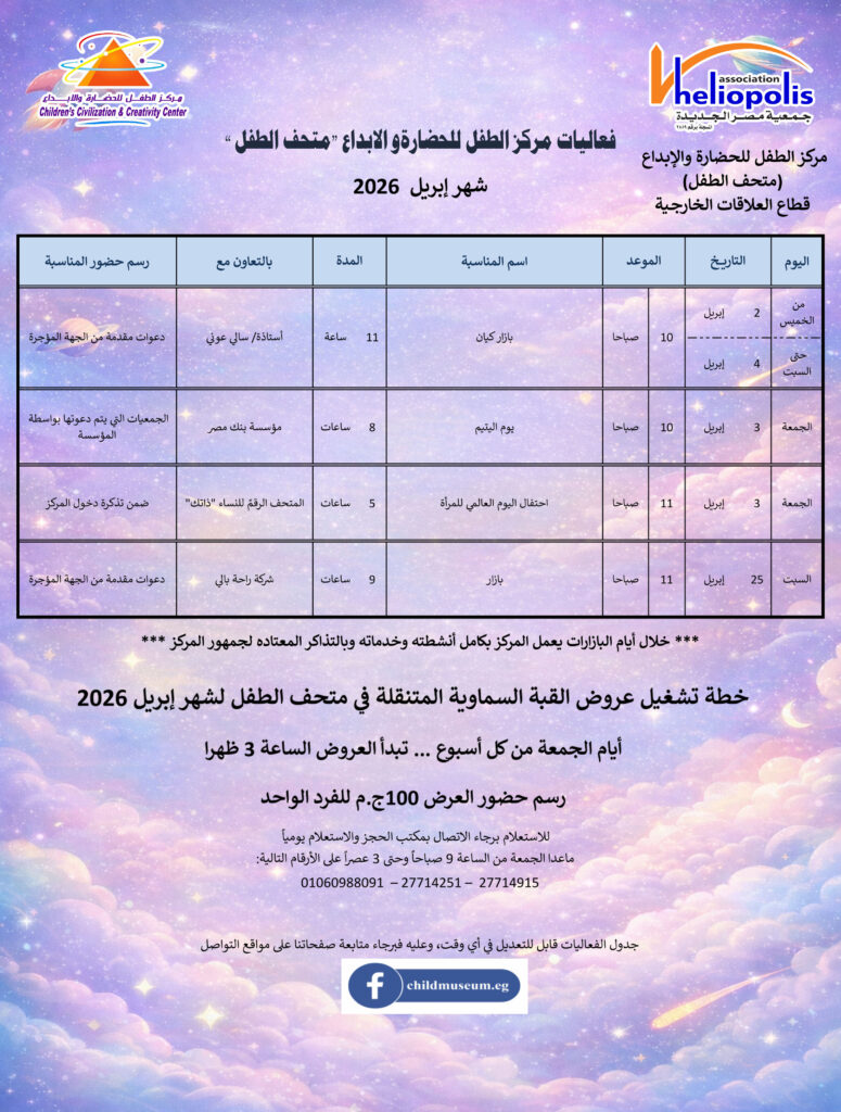افتُتح متحف الطفل في 30 مايو 1996 ليمنح الأطفال معرفة متكاملة عن مصر من خلال التفاعل مع البيئة المحيطة. وفي عام 2008 تم تطويره ليتماشى مع التطور التكنولوجي في المتاحف.