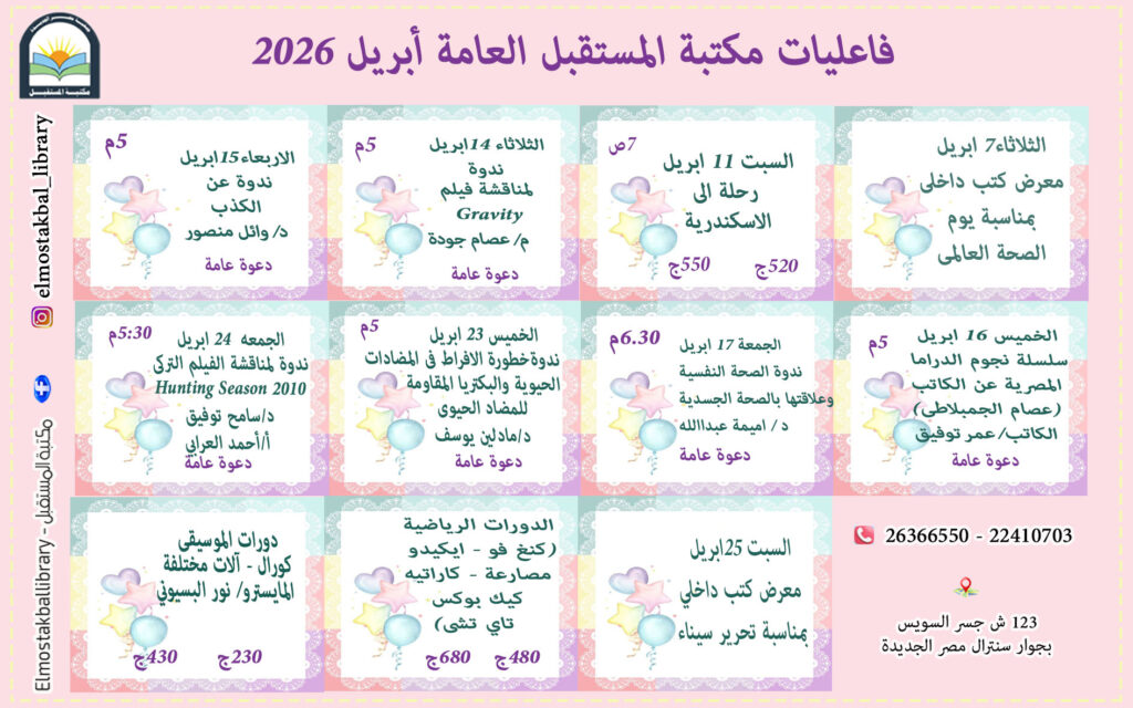 من هنا، جاءت رؤيتنا لتقديم بديل ثقافي وترفيهي هادف، يمنح المجتمع متنفسًا بعيدًا عن إدمان الهواتف المحمولة وضغوط وسائل التواصل، عبر الفعاليات الشهرية والورش والندوات والدورات التدريبية، لتكون منصات لتبادل الأفكار وتوسيع المدارك وصقل الوعي.